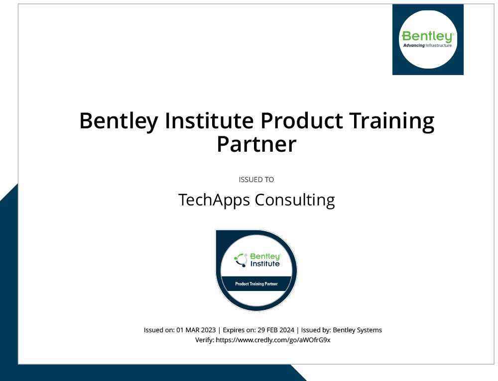 TechApps Consulting is an authorized product training partner of Bentley Institute in India.